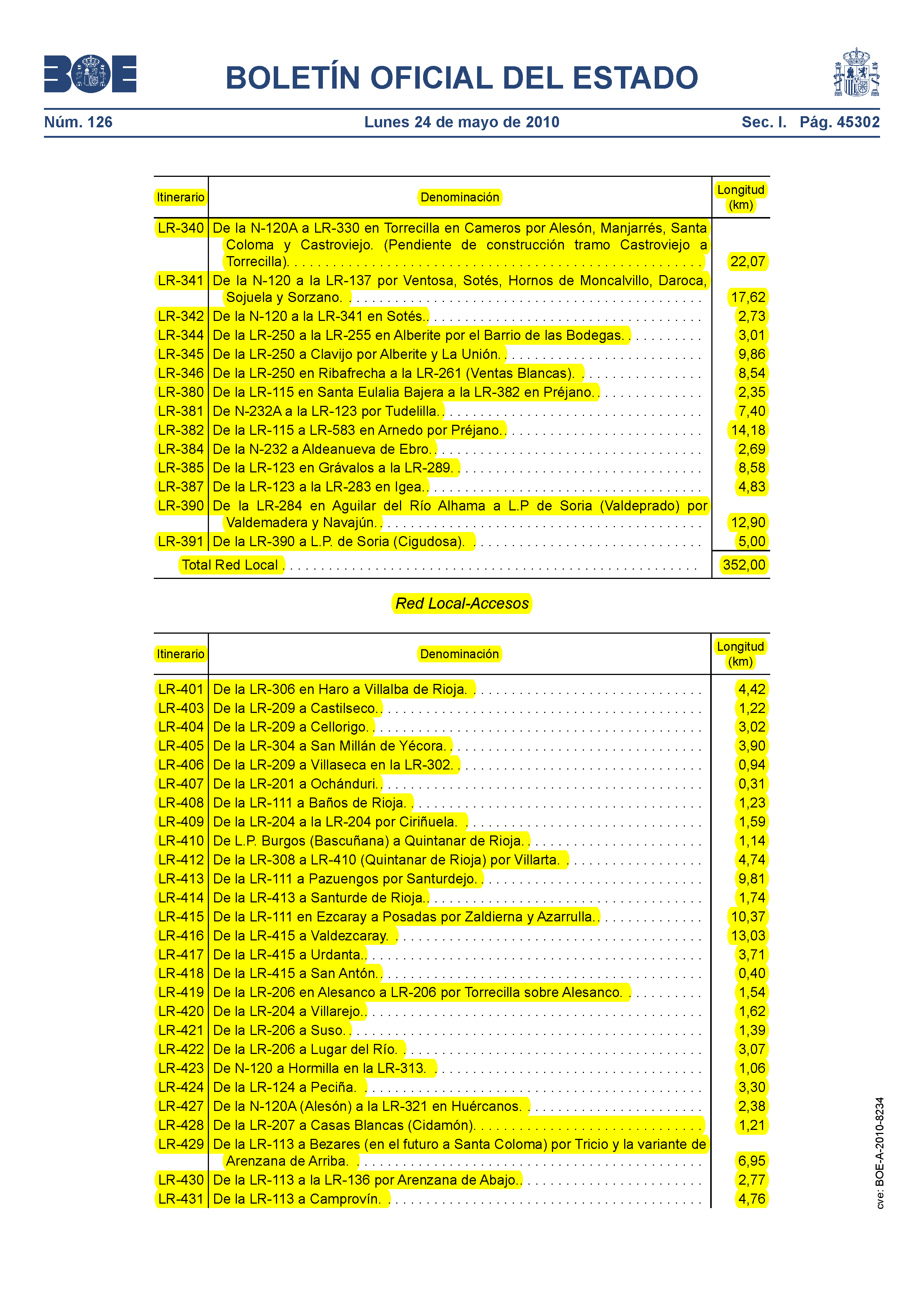 1. Las carreteras comprendidas en la red de carreteras de la Comunidad Autónoma de La Rioja se integrarán en tres redes: