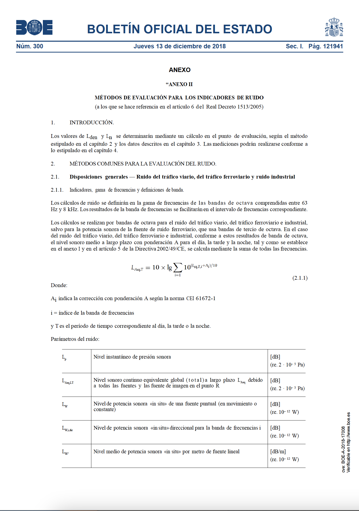 Con la modificación del anexo II del Real Decreto 1513/2005, de 16 de diciembre, se sustituyen los métodos de cálculo de los índices de ruido Lden y Ln utilizados actualmente para la evaluación del ruido industrial, del ruido de aeronaves, del ruido de trenes y del ruido del tráfico rodado, por una metodología común de cálculo desarrollada por la Comisión Europea a través del proyecto «Métodos comunes de evaluación del ruido en Europa (CNOSSOS-EU)». La utilización de esta metodología será vinculante para los Estados miembros a partir del 31 de diciembre de 2018, dejando pues de ser aplicables los métodos del actual anexo II que, tal y como señalan los respectivos artículos 6.2 de la Directiva 2002/49/CE y del propio Real Decreto 1513/2005, de 16 de diciembre, solo estarían en vigor en tanto no se adoptaran los métodos que ahora se establecen.
