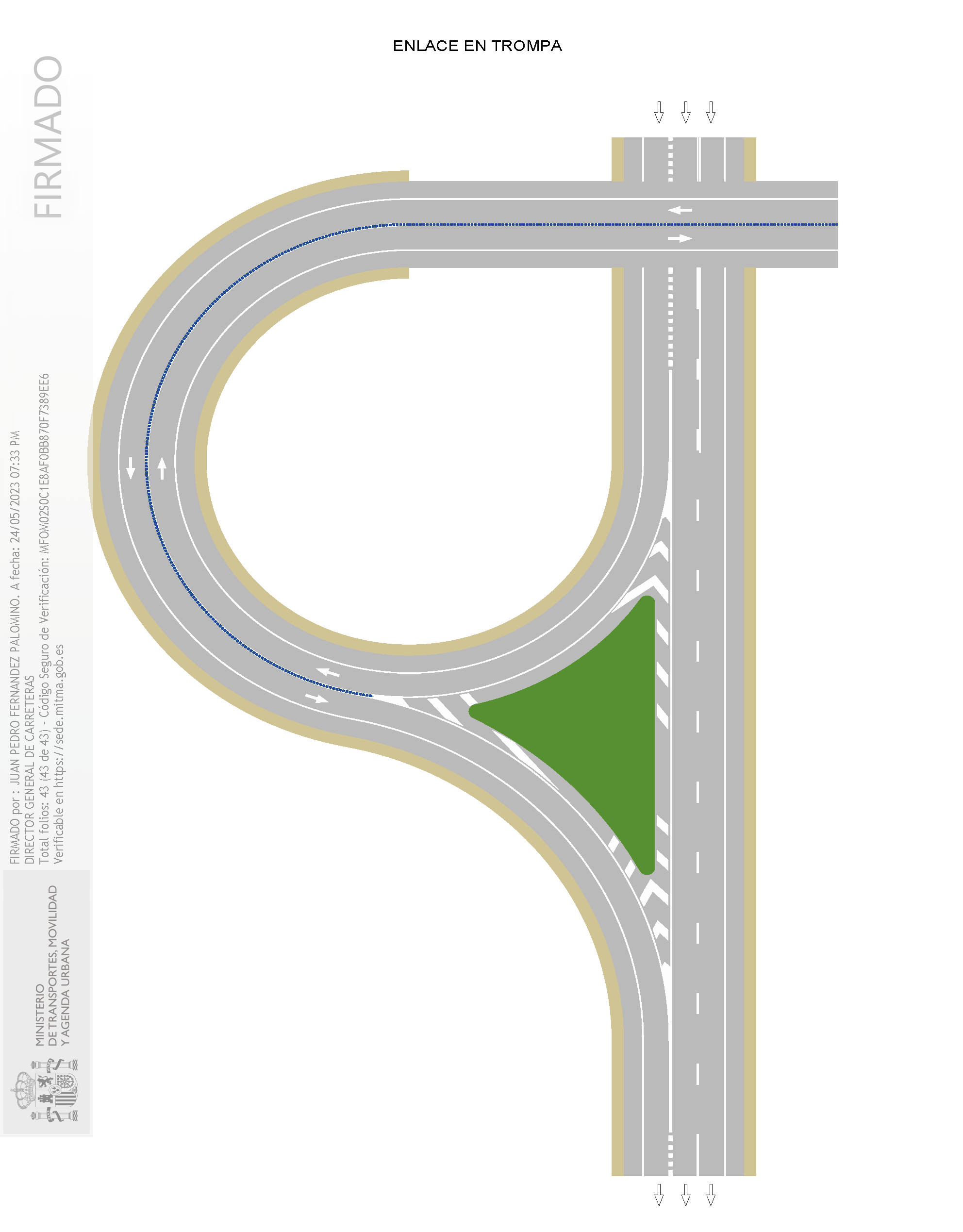 - (1)1 Salida de autopista o autovía con carril de deceleración con prohibición de cambio de carril